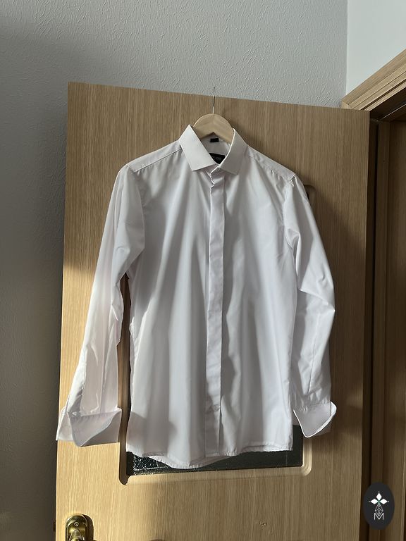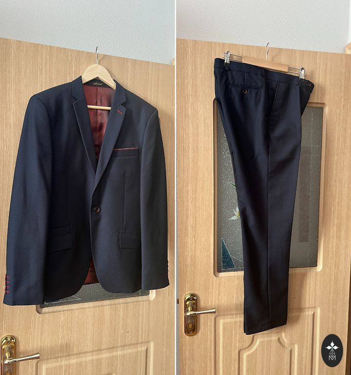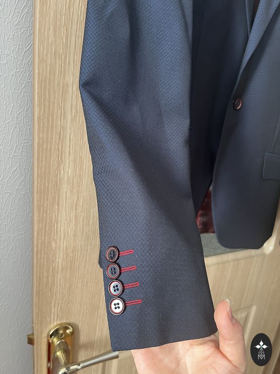 Отличный праздничный костюм, состоящий из жилета, жакета и брюк. Состояние новых вещей, надет 1 раз на пару часов. Куплен в магазине "Mans Drēbju Skapis". Ширина жакета в плечах - 44 см. Грудь - 50 см. Длина жакета - 72 см. Длина рукава - 59 см + 5 см. (Рукава нужно было укоротить, поэтому они были отворочены и слегка подшиты до нужной длины, это можно легко распороть и ничего не будет заметно, край не заглажен). Ширина брюк в талии - 43 см. В бедрах - 52 см. Длина - 96 см + 14.5 см. (Брюки нужно было укоротить, поэтому они были подогнуты и подшиты до нужной длины, это можно легко распороть и ничего не будет заметно, край не заглажен). В настоящее время костюм идеально подойдет на размер S и рост 160 см.