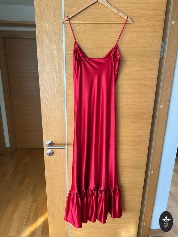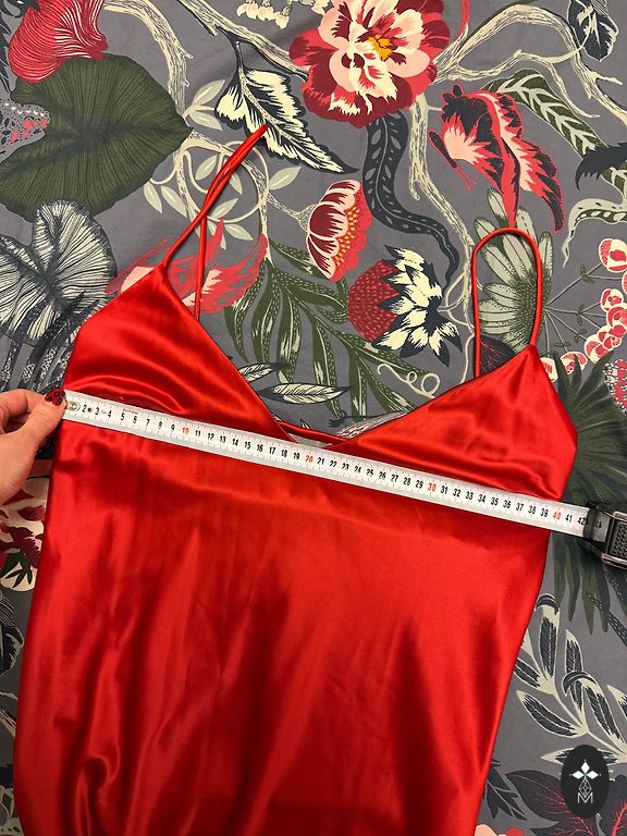 100% шелк. Пояс съемный. Подходит для размера ~ 40. Также для размера 38, талия затягивается поясом.