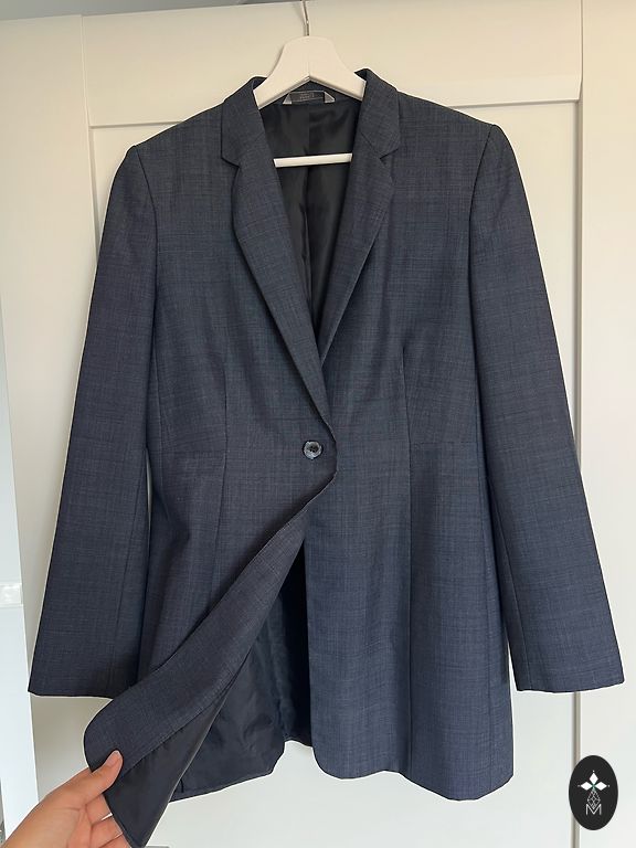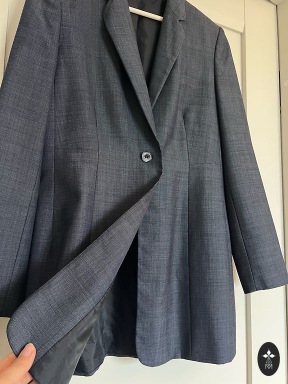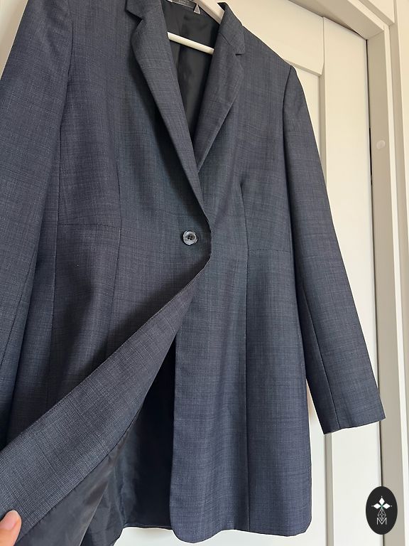 A great coat, elegant and suitable for everyday wear, with a lining, studded buttons, pockets and a small slit at the back. Very comfortable, suitable for warm spring days, cooler summer days or evenings, celebrations and everyday wear. Looks beautiful with white pants or jeans, as well as dresses and skirts! Worn a few times, now a little small. Clean, ready to wear. Measurements from armpit to armpit 46cm From shoulder to bottom 95cm