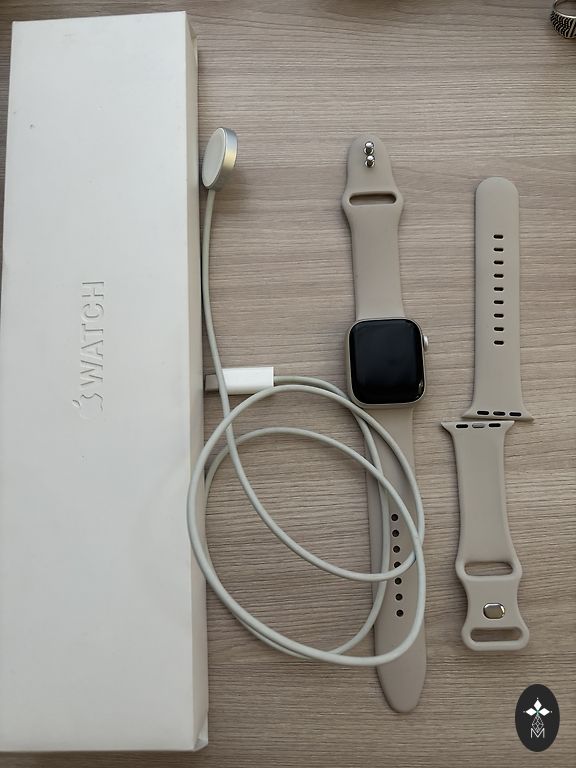 Apple Watch Series 7, in good technical condition. Includes 2 new straps and 1 used one, a few scratches on the glass. Battery at 88%, also sending via parcel locker.