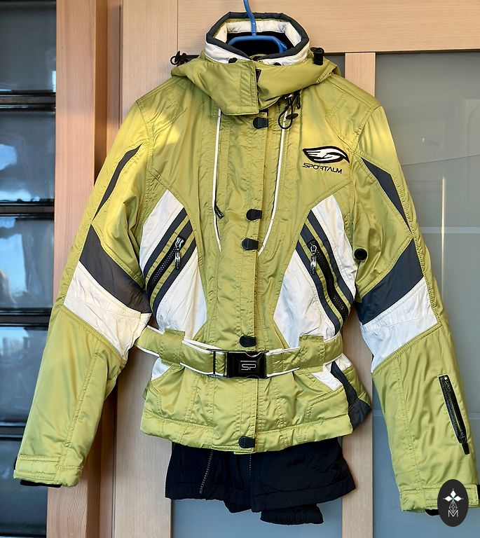 The shirt has a racerback design, while the leggings have a wide waistband and side pockets. The leggings are size M, with a bit of elastane. The shirt appears to be size M, possibly with elastane. Set: top + leggings, which is why I'm selling.