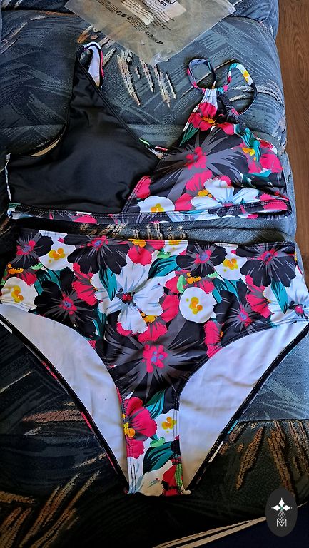 Ülemine osa XL suurus, alumine osa XXL suurus. Uued siltidega, defektideta. Rinnahoidjal on padjad, mida saab eemaldada.