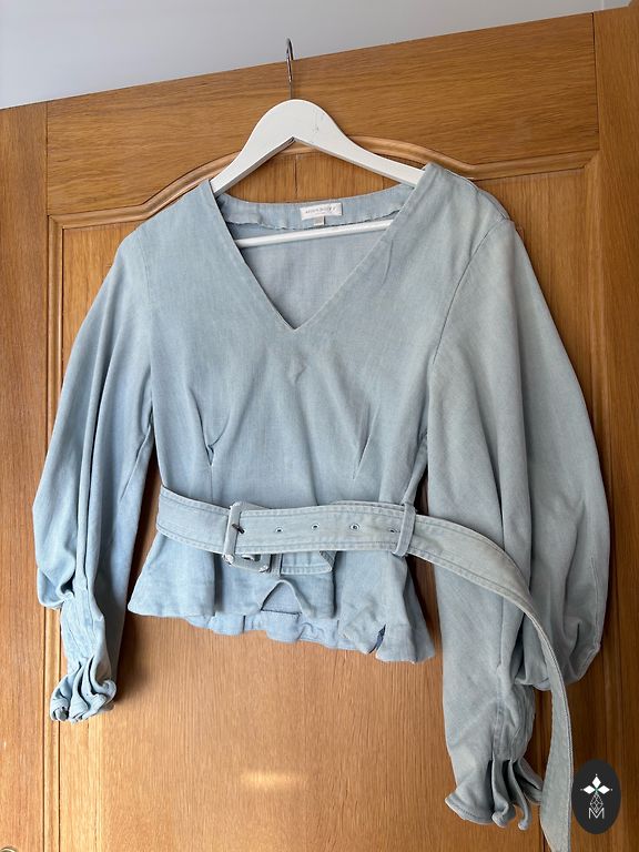 Skaista bluze tur formu,viegla praktiski neburziga 100 % kokvilna,garums 60,rokas garums 28,krušu dalja 52,viduklis 52.