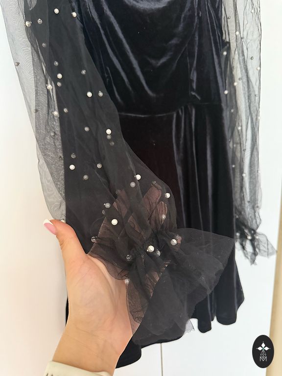 Viskoze ar elastânu odere, poliesters virsějaos materiâls. Krǔtïs 100, gurnos, garums 94cm. Smalká gofra