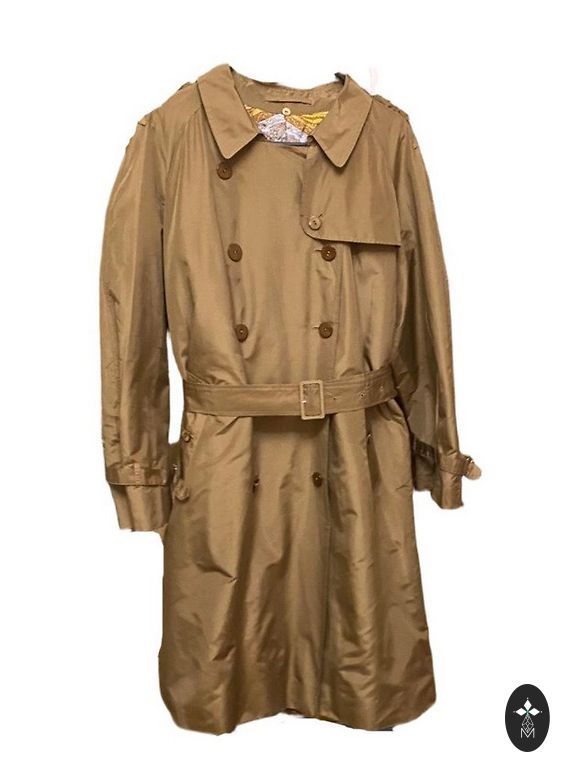 High-quality, sturdy half-coat with lining and belt. Chest 114 cm, length 92 cm.