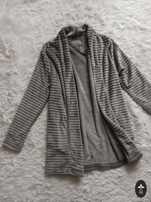 S/M izmērs • var vilkt gan kā kleitu, gan atvērtā veidā kā vesti • garums 111 cm • starp padusēm platums 45 cm