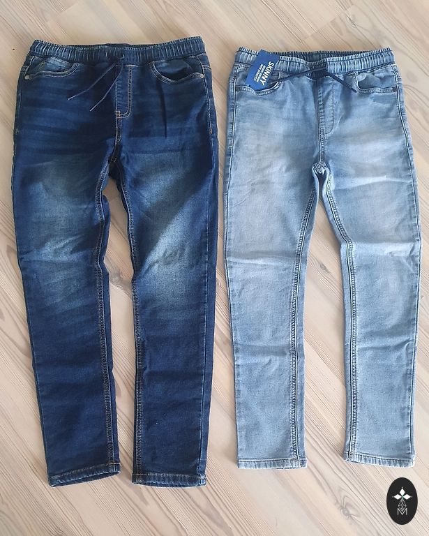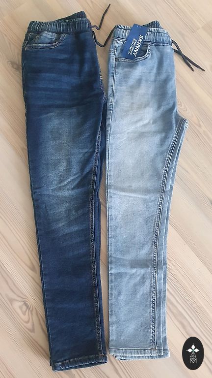 Visiškai nauji džinsai, buvo nupirkti kaip atsarginis variantas. Šiek tiek elastingi. Džinsai turi efektą prie kišenių ir gale - susiglamžę. 🙂