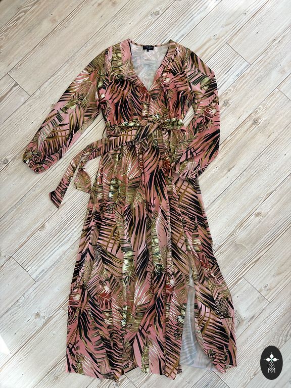 Gėlėta suknelė stilinga L-XL -20.00 EUR, išparduodu spintą, Krūtinė 118-120, ilgis 138 cm, rankos ilgis 64 cm
