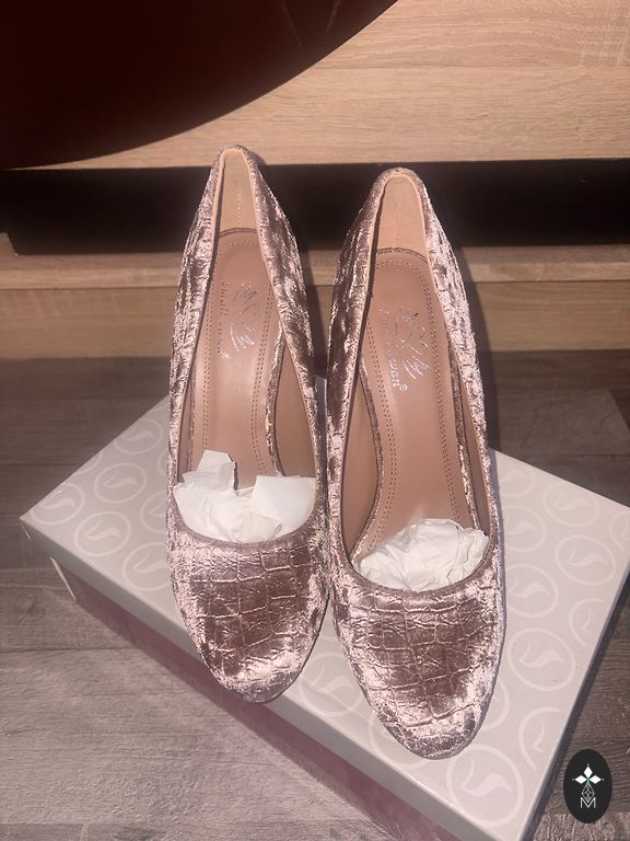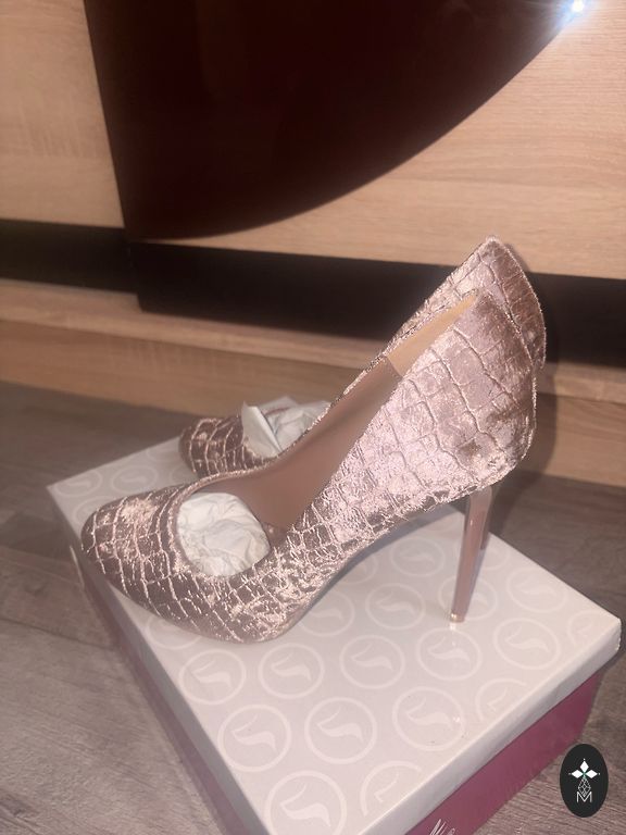 Kurpes 38.izm.ārpuse dabīga zamšāda,krāsa bēša,papēža augstums 7.5cm.Smuki izskatās virsū.
