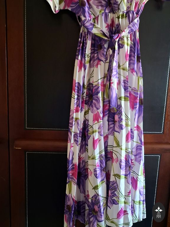 Worn once to an event. Cleaned at the dry cleaners. Perfect condition. Very luxurious, beautiful dress. Size on the tag is 40.