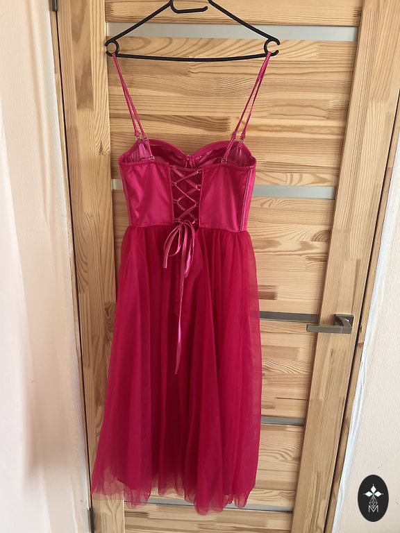 Платье с кружевным верхом, с застежкой на спине, застежка на пуговице.