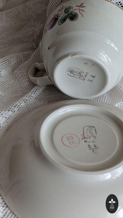 6 personas.Mazlietota tējkanna, cukura trauks un sviesta trauki.Pārējais viss ir jauns. Kruze 190 ml.,Polija 70-80g.g.