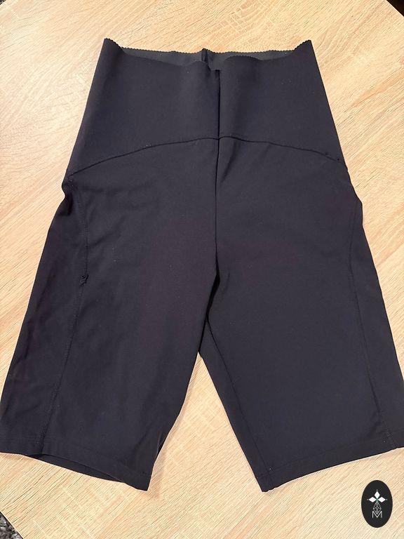 Black, stretchy DECATHLON shorts with inner shorts. In perfect condition, like new. Size L - length 34, waist size 82 to 100 cm. Tie fastening on the inside. Zippered pocket on the back at waist level. Composition: 77% polyester, 13% elastane
