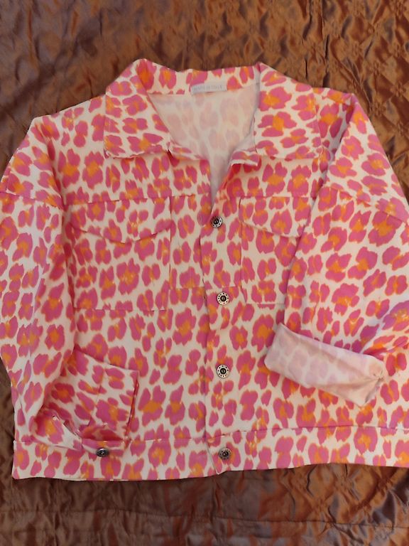 Nauja, nedėvėta stora medvilninė striukė su siuvinėtu nėrinių volanu.