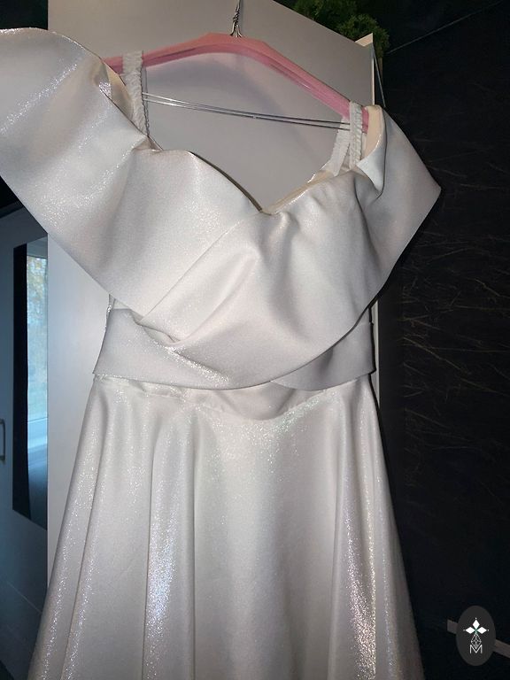 Свадебное платье с фатой в отличном состоянии. Надето один раз, очищено, в идеальном состоянии. Размер 38-40, носила на 23 неделе беременности, ничего не было подогнано или перешито, оригинальный размер.