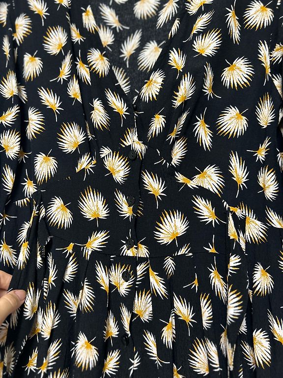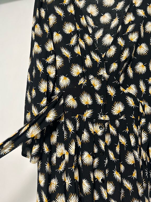 2x uzvilkta ērta un patīkama uz auguma. Aizmugure garāka kā priekša. Kleita 3/4 rociņas.