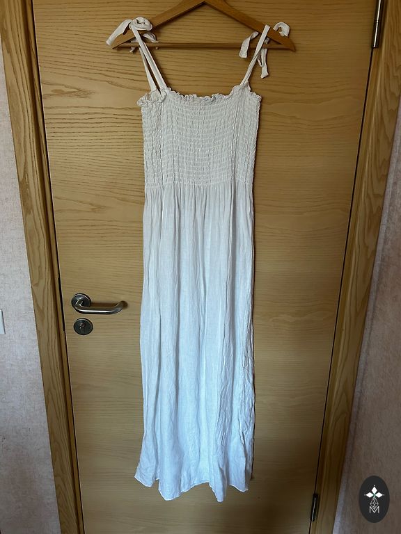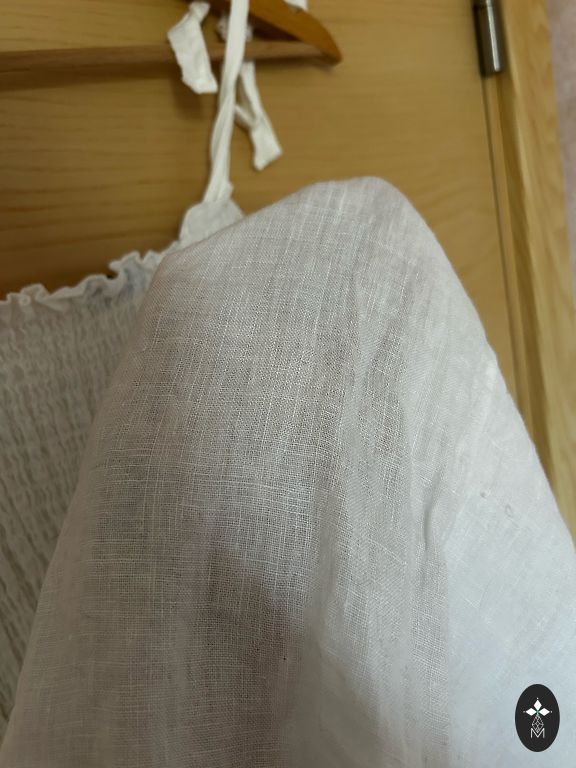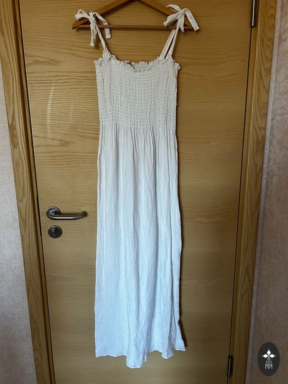 100% lininė suknelė iš Ukrainos prekės ženklo The Sleeper iš vestuvių kolekcijos, tačiau tinkama ir kasdieniam dėvėjimui. Dydis ONE SIZE, tikrai tinka iki XL (man ant XS gumelė šiek tiek laisva). Nepaprastai gražios nėrinės ir pūstos rankovės, galima dėvėti tiek ant pečių, tiek žemiau.