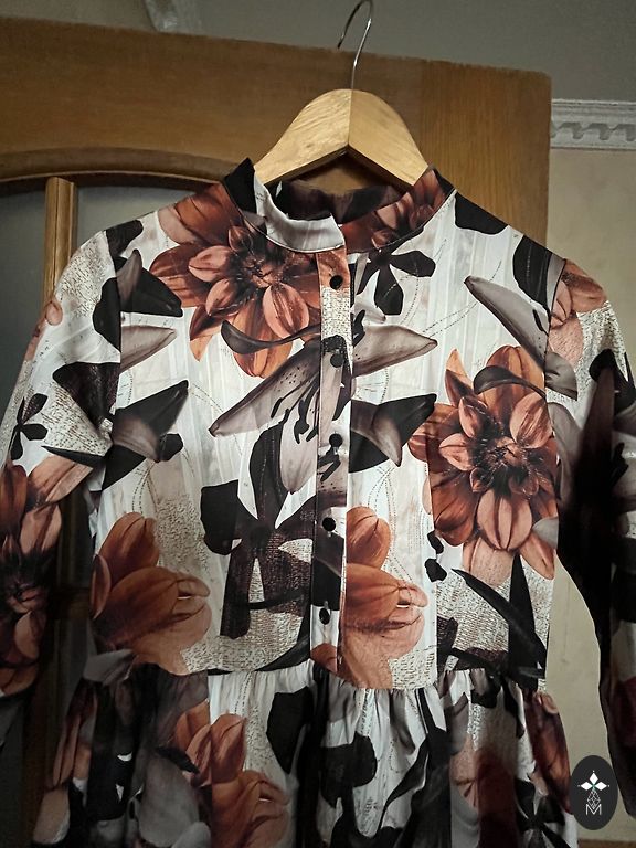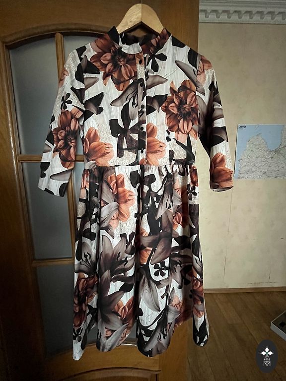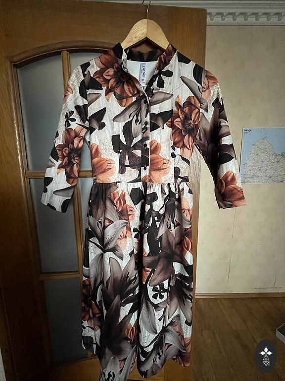Ļoti skaista, stingra, neburzīga auduma kleita.