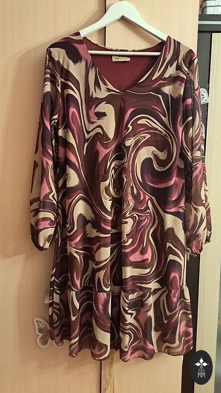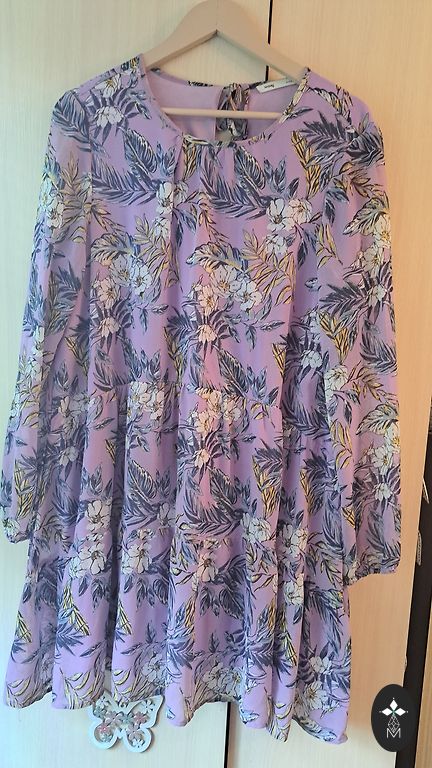 Kleit, sobib L/XL suurusele, rindkere kuni 110 cm, pikkus 132 cm, materjal veel venib.
