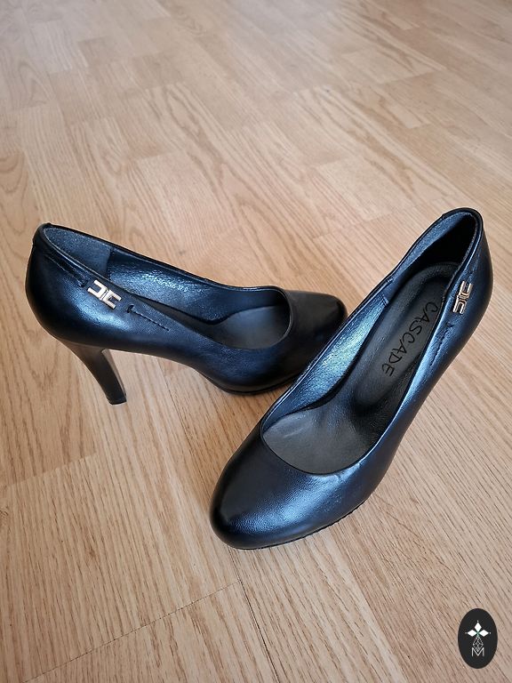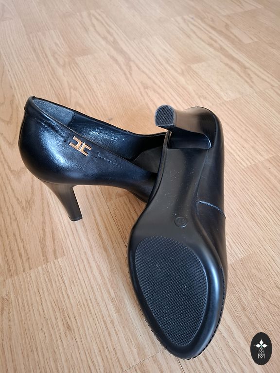 Ļoti skaistas stilīgas kurpes ar dekoratīvām zeltaini spīdīgām maliņām un ar papēdi 9 cm.