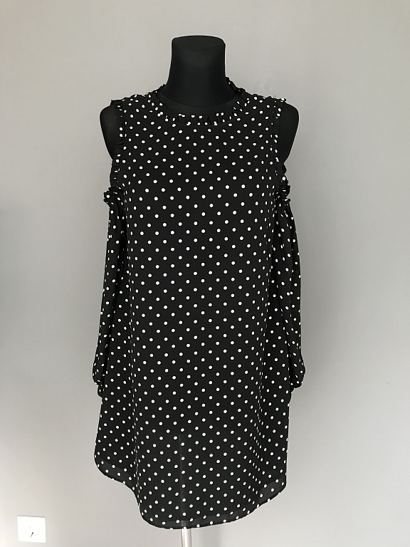 Rindkere ümbermõõt 38 cm, puusade ümbermõõt umbes 40 cm, pikkus umbes 87 cm. Kleit on liibuv ja valmistatud venivast kangast.