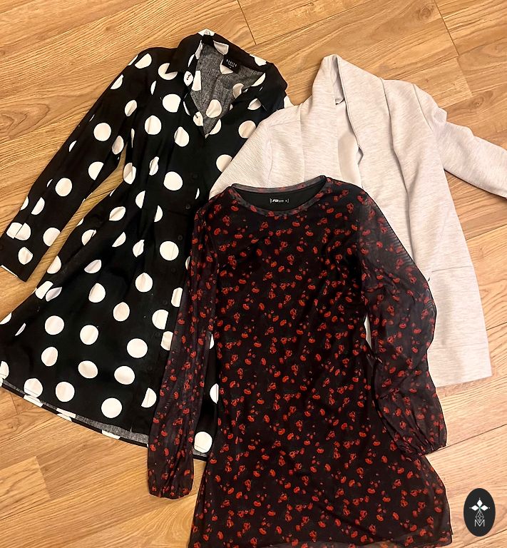 Lencīšu rievotais melnais ar izšūtām puķītēm no New Yorker, t-krekla tipa melnais no cropp un vēsi zilais skims tipa materiāla arī no New Yorker. Visi XS un visi padodas, tā kā derēs arī uz S. ❤️