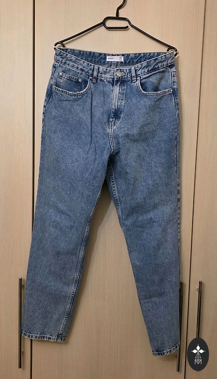 48 suuruses teksapüksid. Mõõdud: vöö-47x2; puusad-53; sisemine õmblus - 68. Puudus või "omapära" - töötlemata püksisääred. + Omniva