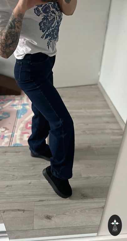 Pārdodu džinsa bikses melnā krāsā.Viduklis 78cm, gurnos derēs līdz 112 cm, bikšu garums 109cm, iekšējās vīles garums 77cm, bikšu gali 21×2cm.Sūtu uz pakomātu, klātienē netiekos, bildes uz auguma nefotografēju, pārdoto preci atpakaļ nepieņemu, sūtīšanas izmaksas sedz pircējs.