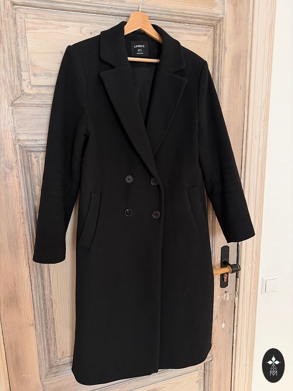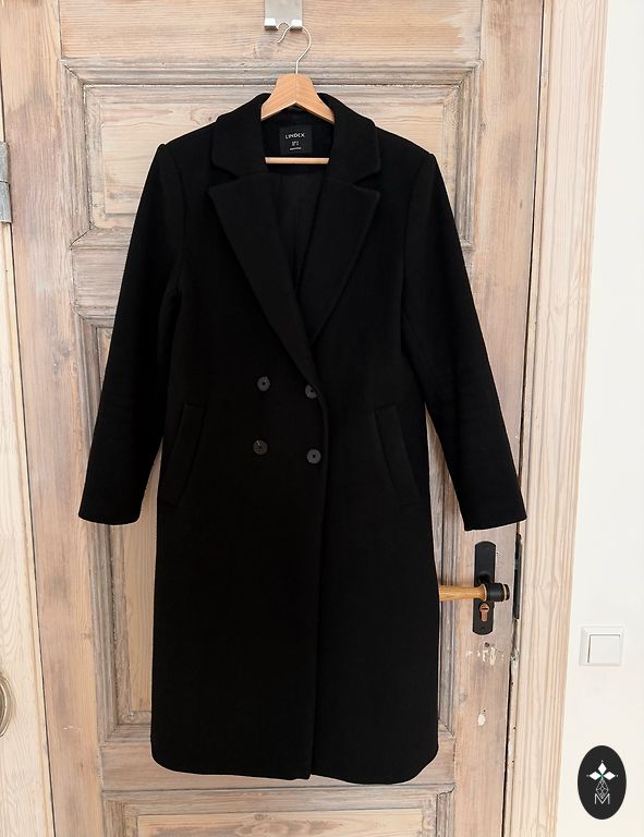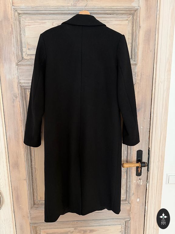 Melns rudens mētelis, der uz 36.izmēru