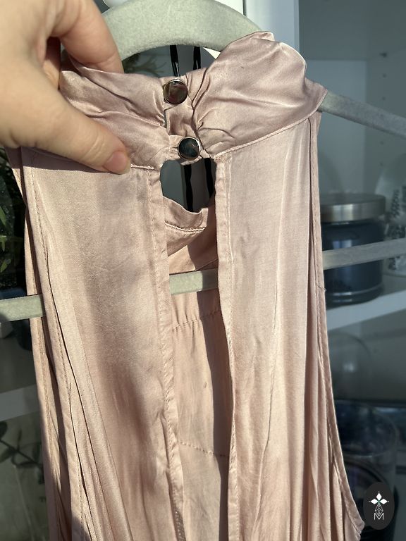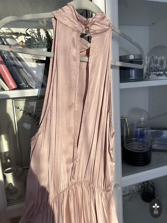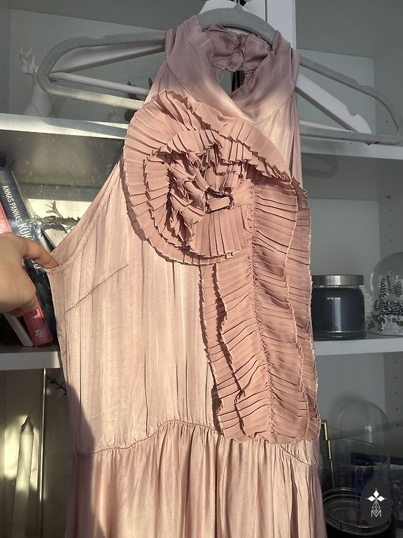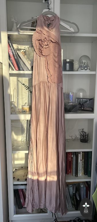 Uus, kõik sildid alles. Hallikas-sinine, suurus L. Väga ilus, plisseeseelikuga. Elegantne pulmadeks ja muudeks pidulikeks sündmusteks.