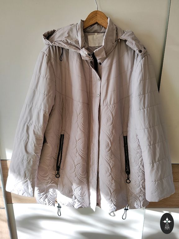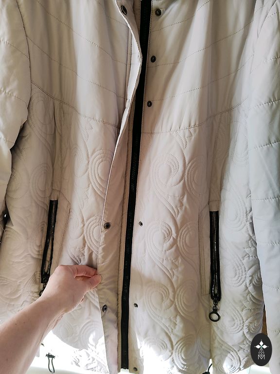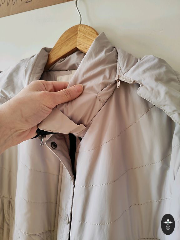 Gražus prigludęs siluetas. Asimetriškas užtrauktukas. Kišenės. Daugiau kaip viršutinė striukė, nei švarkas.