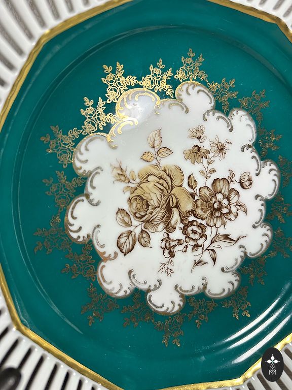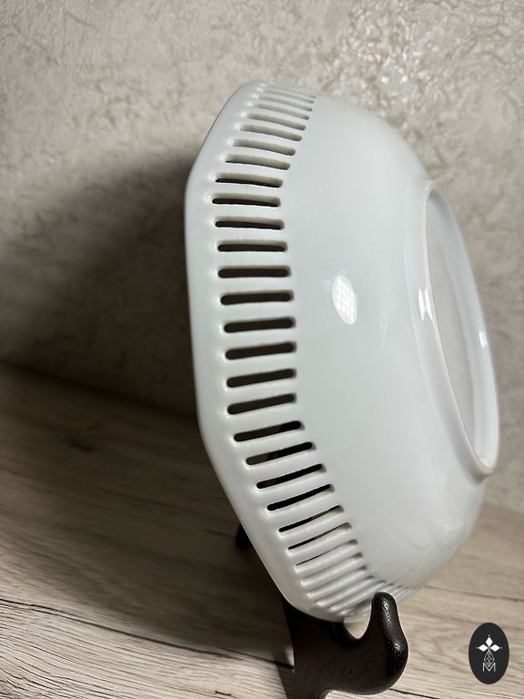 Prabangus komplektas 1+6 vnt. iš balto reljefinio porceliano Rosenthal Vokietija puikios būklės. Didelio lėkštės skersmuo 18 cm x 4,5 cm. Mažo 6 vnt. 11,5 cm x 2 cm. Komplekto kaina 40€. Yra Rygos Pļavniekos arba gerai supakuotas prekes siųsiu per paštomatą.