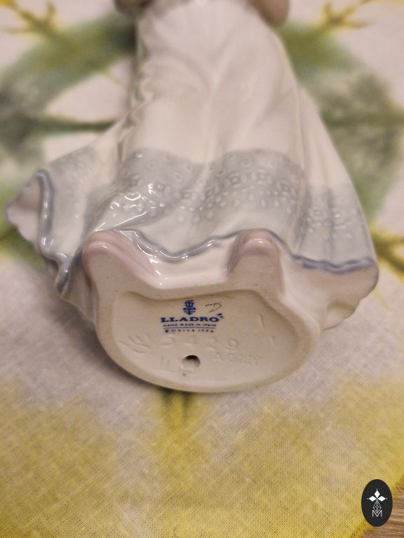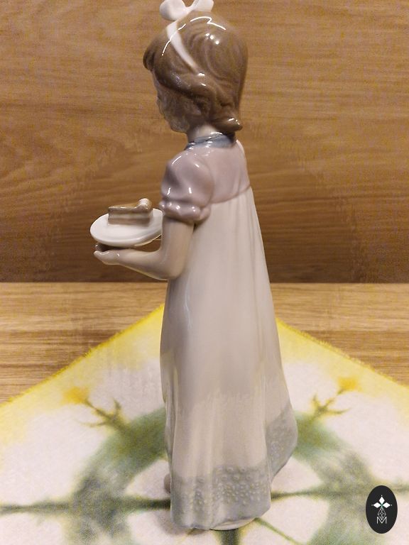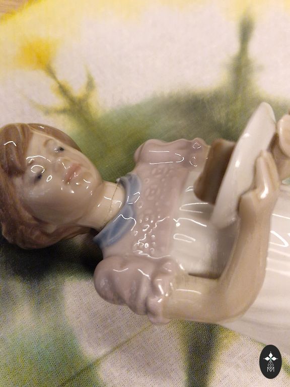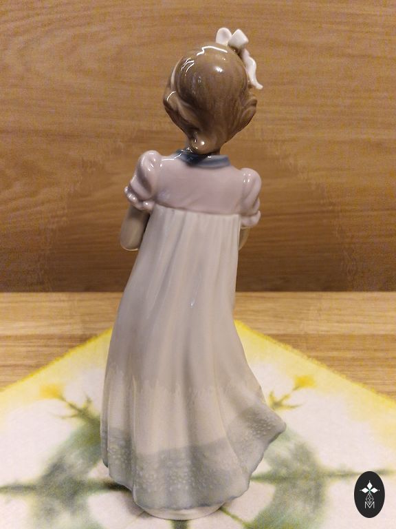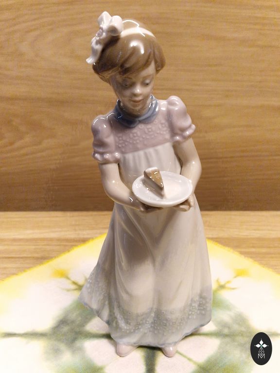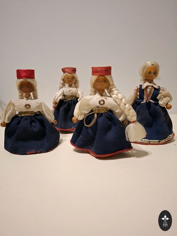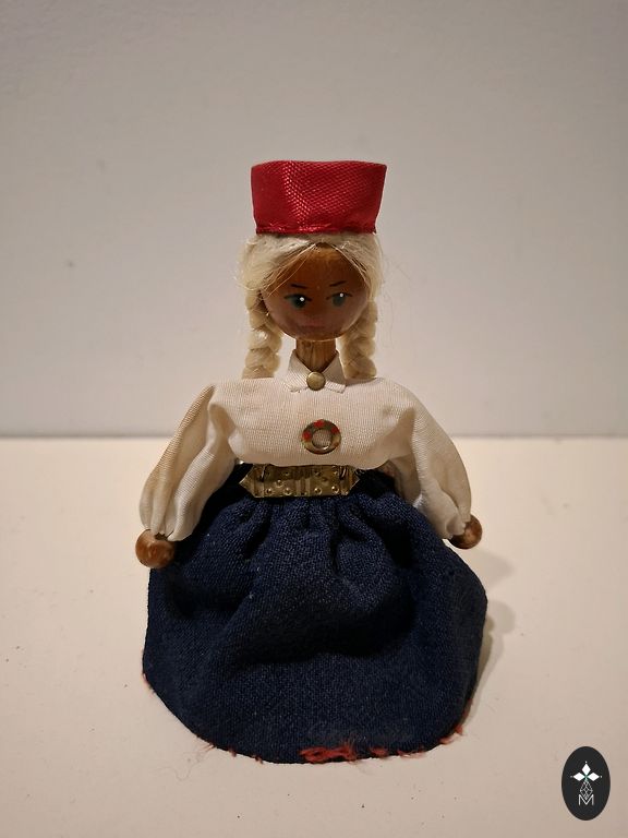 Высота 10 см, внизу утяжеление, может стоять вертикально. Немного стёрта краска на лице.