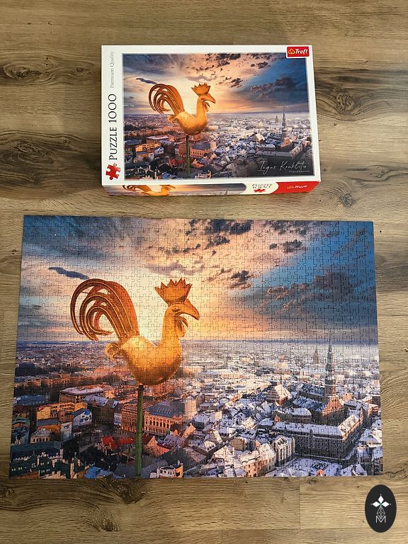600-osaline pusle – saab kokku panna mõlemalt poolt! Ühel pool on värvikas torn, teisel pool mustvalged lilled, mida saab kokku pannes värvida!