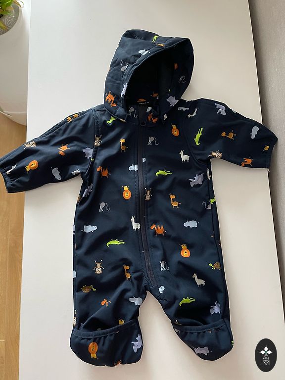 Selling an insulated mid-season overall. Suitable for weather conditions from 0 to +10C. Moisture-resistant, wind-resistant, yet breathable, with reflective elements for dark conditions. Composition: outer layer, filling, and lining: 100% polyester. Used by one child for 2 seasons. No defects.