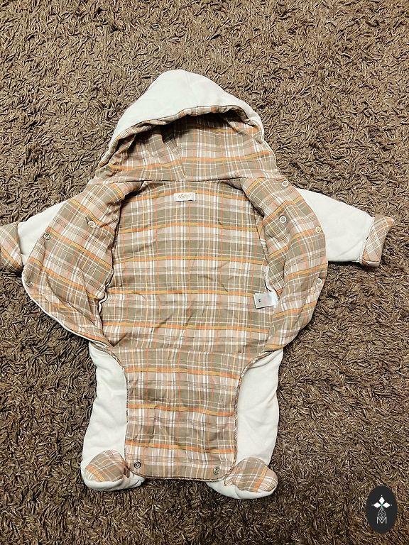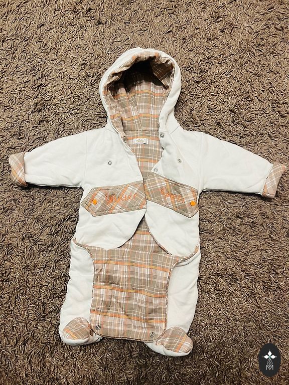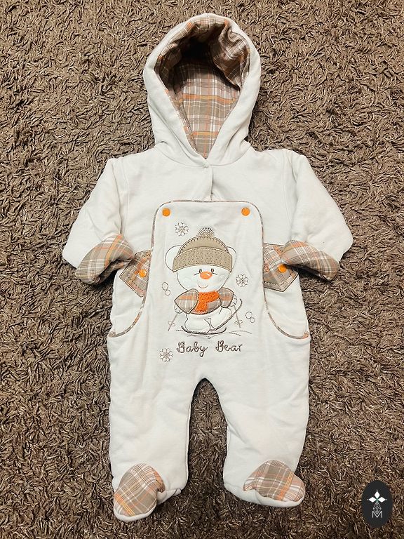 Knitted jumpsuit. Not particularly suitable for cold weather. Not worn. From shoulders to feet 56 cm.