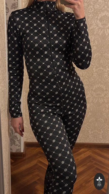 Мягкий, теплый, с капюшоном и карманами, красивого цвета. Смешанный материал, замша с полиэстером. Брюки узкие с белой тесьмой.
