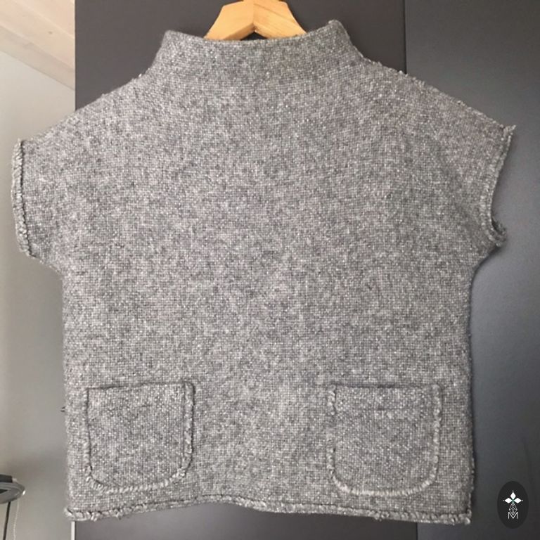 Praktiski nevilkta, tumši pelēkā. Sānos sasienama. Nav vietas skapī, tāpēc pārdodu. Sastāvā bija arī mazliet viļņa, bet brītiņu nogriezu jo to velkot redzēja.