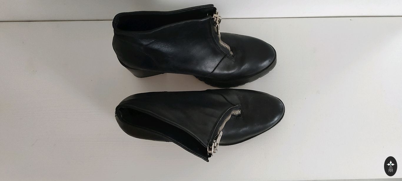 Несколько раз надетые осенние полусапожки с немного утепленной подкладкой. Сапожки подойдут для узкой стопы.