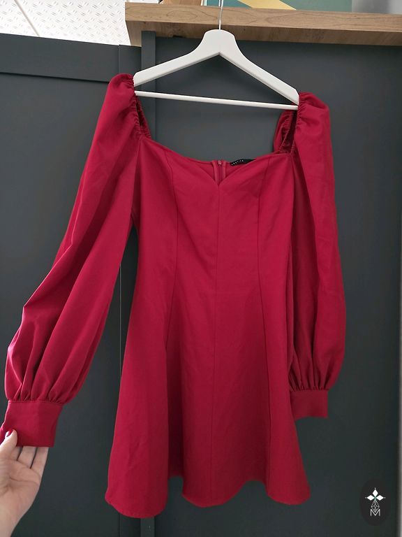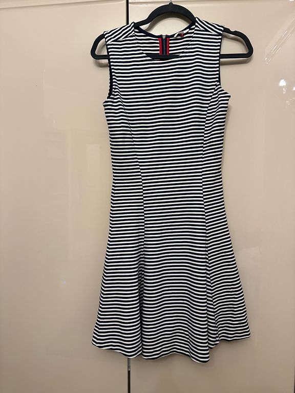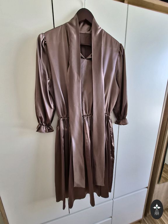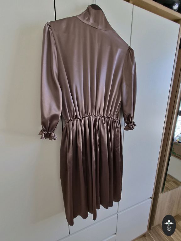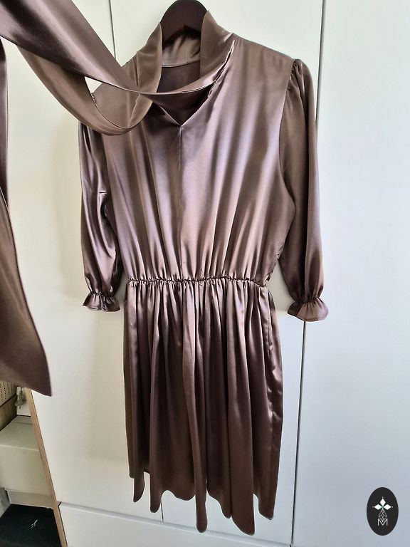 Uz augumu 163 kleita būs virs ceļa. 2 svārka kārtas. Ļoti biezs un patīkami krītošs kokvilnas audums, vilkta 1 reizi uz bērna izlaidumu. Izskatīsies labi gan uz S gan stabilu M izmēru. 38. izmērs