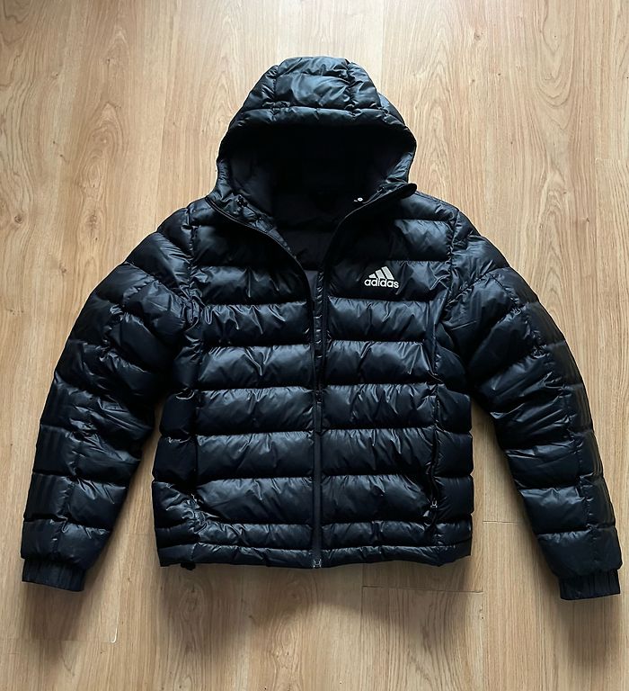 Light, thin but warm jacket, perfect for travel, driving, or as an underlayer beneath a coat. Thin filling layer provides warmth, folds to take up very little space, and is very lightweight. Zipper closure, pockets. Dark blue color, no defects, condition close to new 👌🏻🙂 Size M