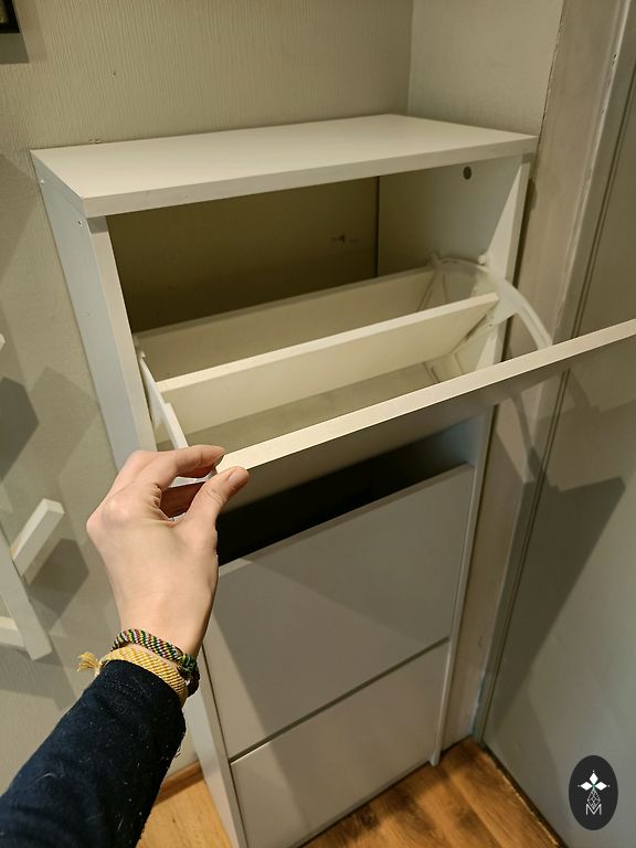 Senovinis veidrodis ant medinio rėmo, apačioje pritvirtinta maža lentynėlė kremui, šukoms ir pan. Viršuje plotis 38 cm, apačioje plotis 34 cm, aukštis 54 cm. Per metus ir persikraustant kai kur yra nedideli (matiniai) įbrėžimai, tačiau naudojimui netrukdo.