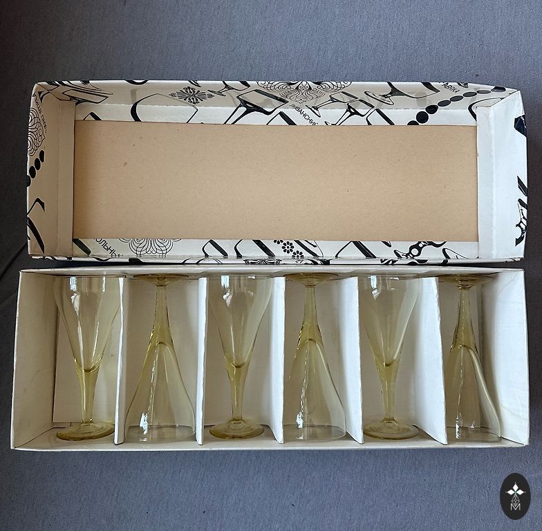 Glabātas un taupītas, reti izmantotas, bet tīri glītas un labi izmantojamas. H - 10 cm, platums 6.5 cm. Ietilpība 100 ml.