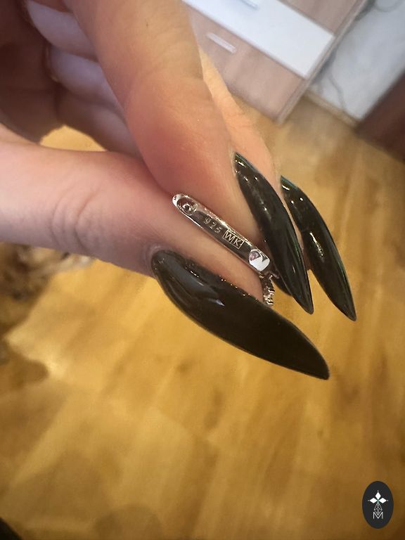 Väga hoolikalt, poleeritud, tasase tagaküljega ja hõbedase kinnitusega.