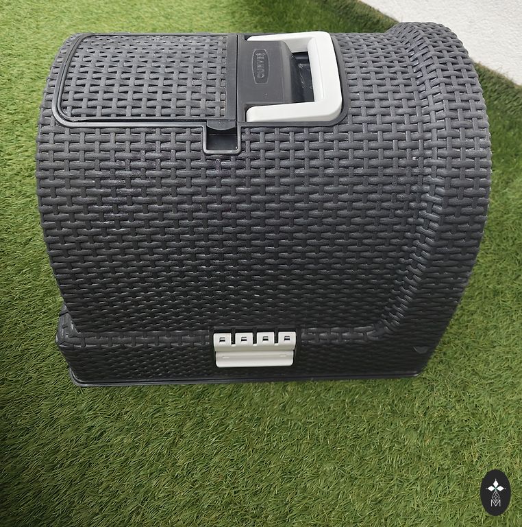 Bezkontakta atkritumu tvertne 5l. Atveras ar sensora palīdzību. Glancēta ar elegantu sudraba vāka malu. Darbojas ar baterijām. Ražotājam skaitās melnā krāsā, bet diemžēl dzīvē krāsa atbilst tumši pelēkai. Izmērs 25x14cm. Augstums 22cm