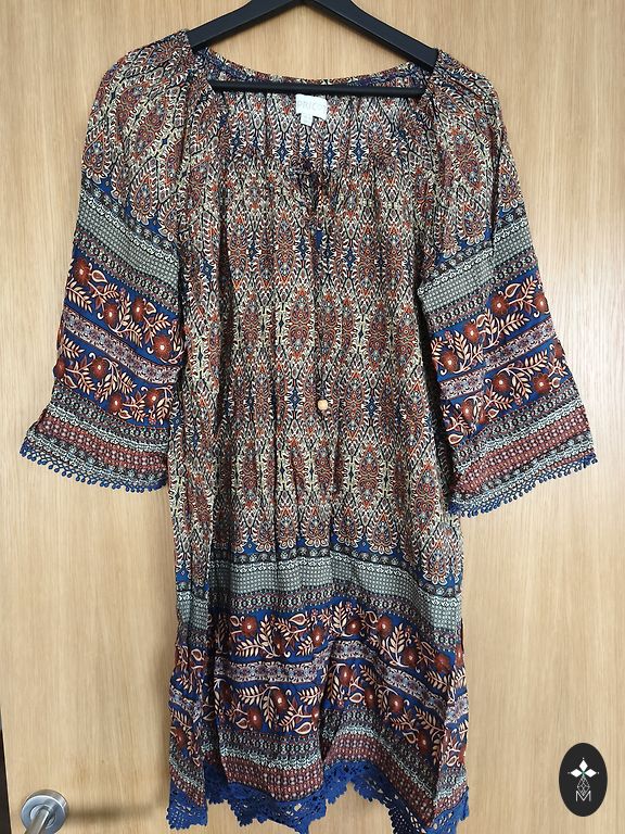 Kleita ar īsām piedurknēm un siltu svārku daļu.