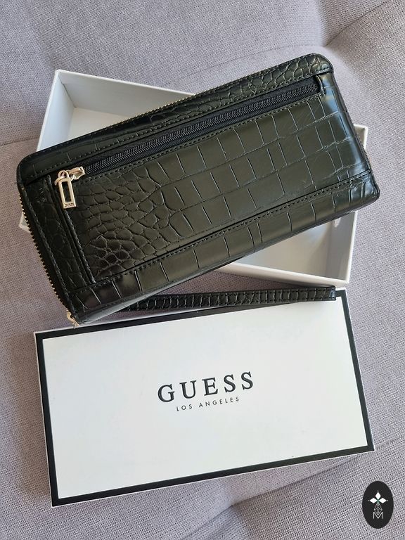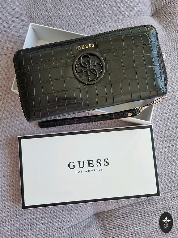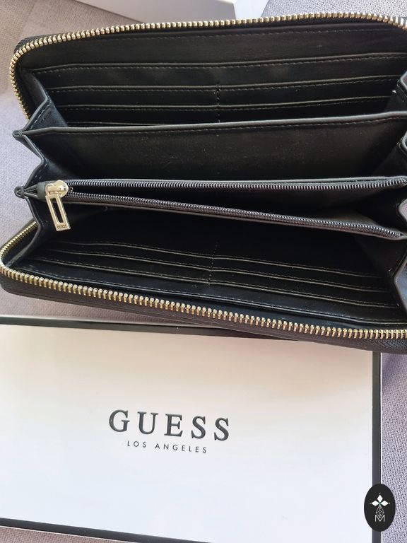 Ainus puudus, nagu fotodelt näha, on mõned kriimustused Guess'i sildi esiküljel. Allosas on väike rebend, kuid koti värvi tõttu ei ole see hästi märgatav.