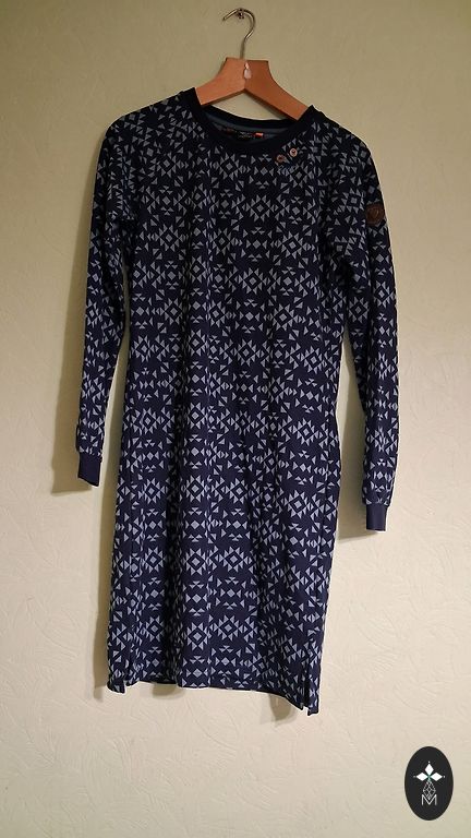 ZIB* XS izmērs, kas vairāk atbilst S/36.izmēram. Platums krūtīs 49cm, gurnos 47cm, kleitas garums 91cm. Audums elastīgs.