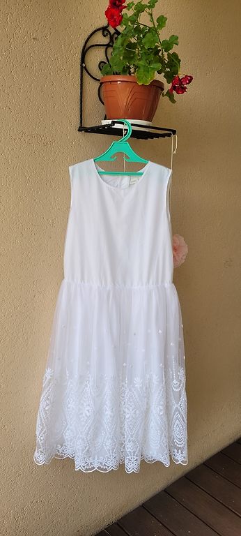 Sniegbalta kleitiņa. Pirkta shein. Uzvilkta tikai vienreiz uz fotosesiju. Atšūtas rociņas, kuras var arī izlaist (šuveja atšuva), jo priekš 86.izmēra likās par garu.