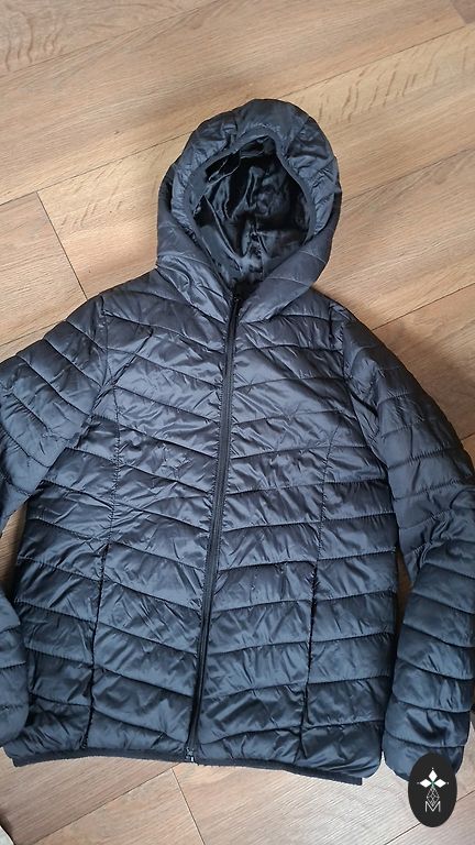 Švarkas labai gerai išsilaikęs. Atsparumas vandeniui 10000 mm. Striukė tinka 152-164 cm ūgio, rankų ilgis 59 cm.